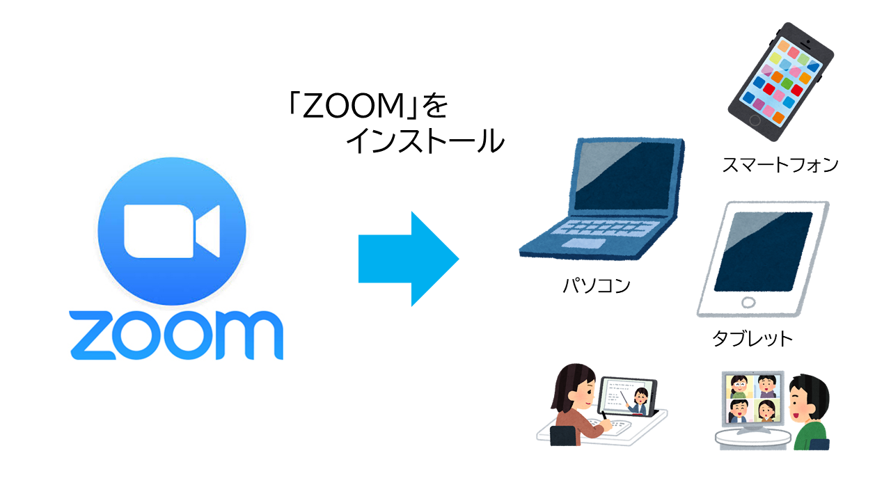 PC、タブレット、スマホにZOOMをインストール下さい。